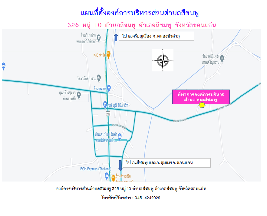 325 หมู่ 10 ตำบลสีชมพู อำเภอสีชมพู จังหวัดขอนแก่น 40220 |